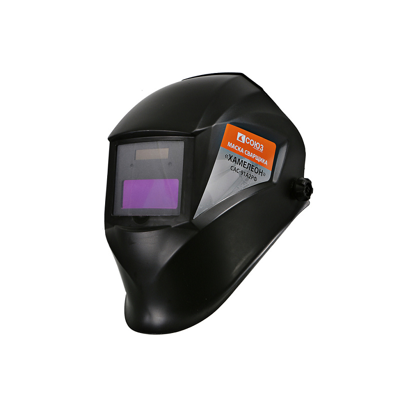 Сварочная маска СОЮЗ САС-91А2РФ. Простая в использовании модель для индивидуальной защиты как от вредного инфракрасного и ультрафиолетового излучения, так и от брызг расплавленного металла.