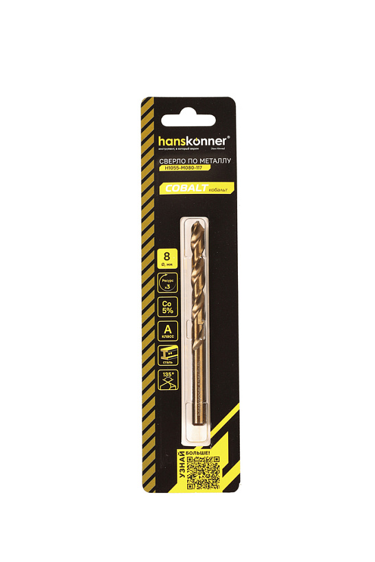 Сверло по металлу COBALT 8,0х117мм Hanskonner
