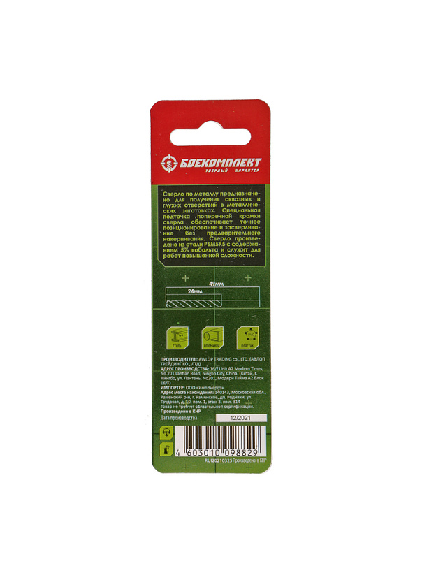 Сверло по металлу Кобальт 2,0х49мм 2шт БОЕКОМПЛЕКТ