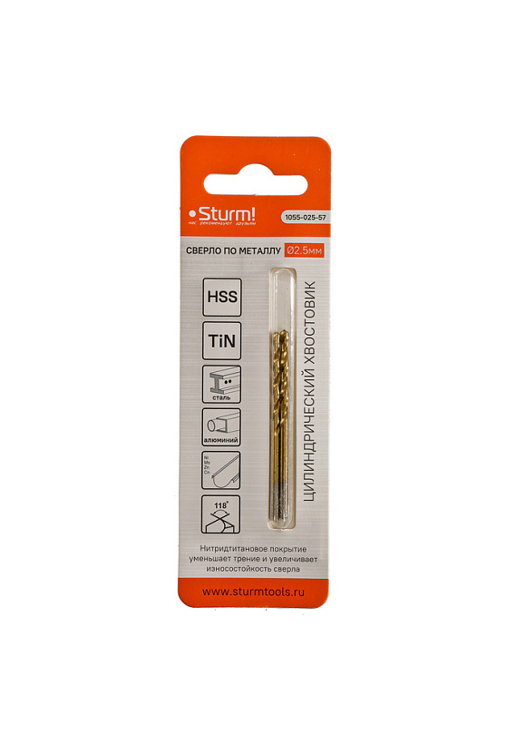 Сверло по металлу Sturm! 2,5х57 мм, сталь HSS, нитридтитан., 118° ,блистер 2 шт