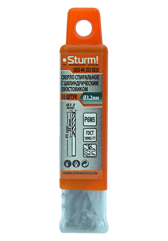 Сверло по металлу Sturm! 3,2х65мм, сталь HSS, упаковка 10 шт