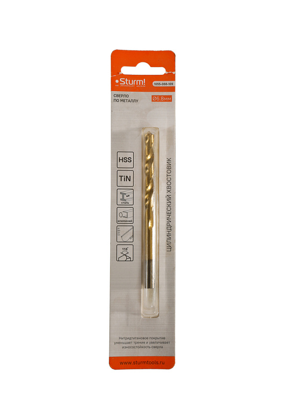 Сверло по металлу Sturm! 6,8х109 мм, сталь HSS, нитридтитан., 118° ,блистер 1 шт