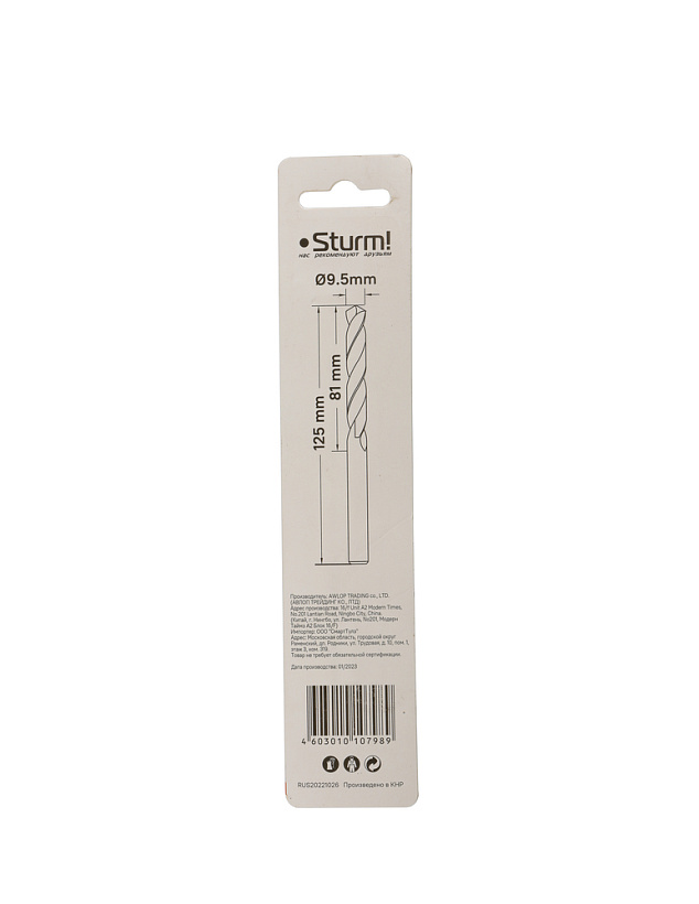 Сверло по металлу Sturm! 9,5х125 мм, сталь HSS, нитридтитан., 118° ,блистер 1 шт