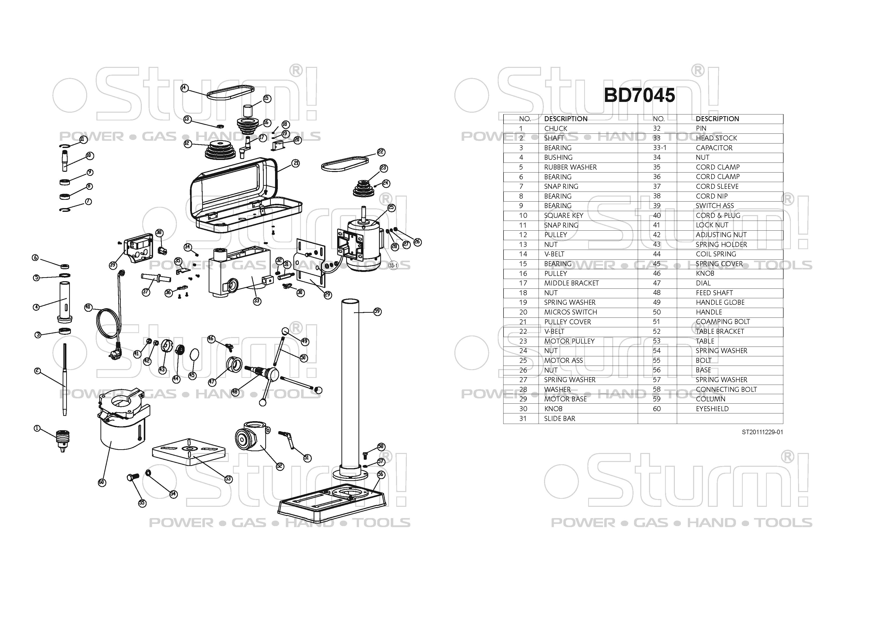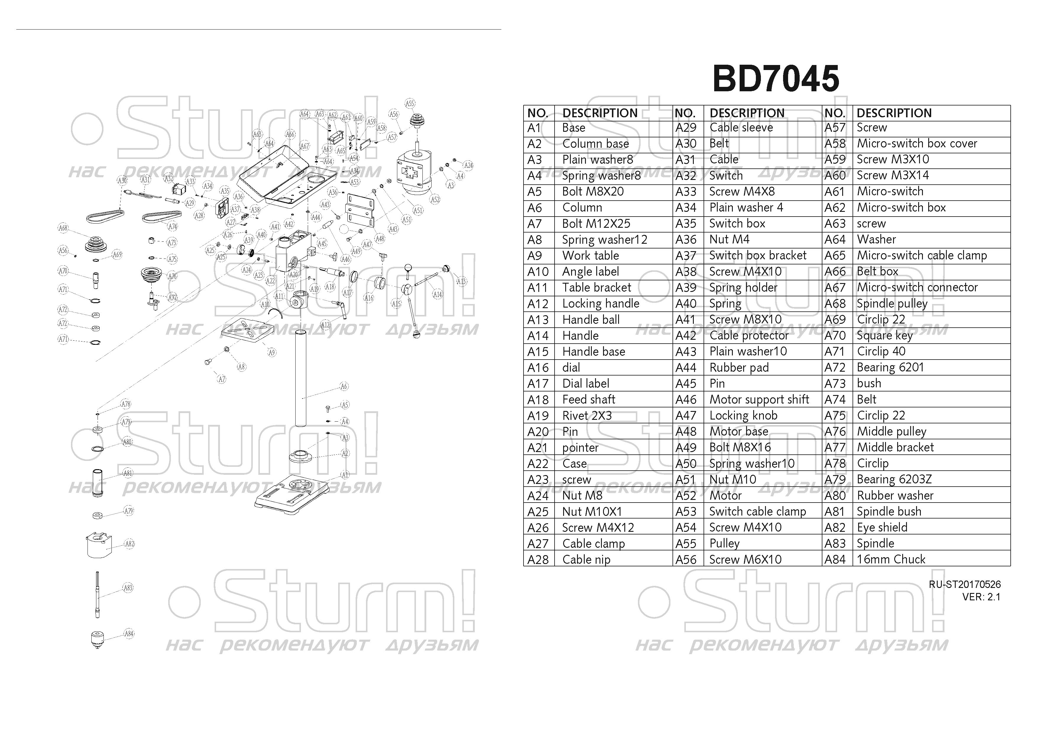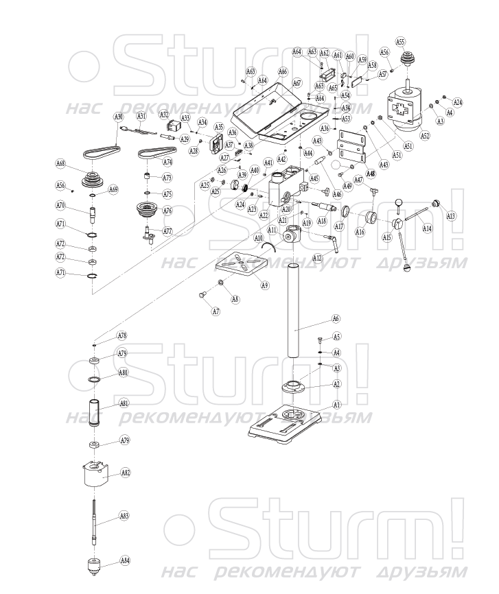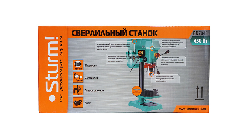 Станок сверлильный BD7045 Sturm!, 0,45кВт, 9 скоростей, патрон 16 мм