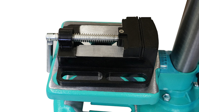 В комплект к инструменту входит зажим-тиски, с помощью которого можно аккуратно зафиксировать даже детали закругленной конфигурации.