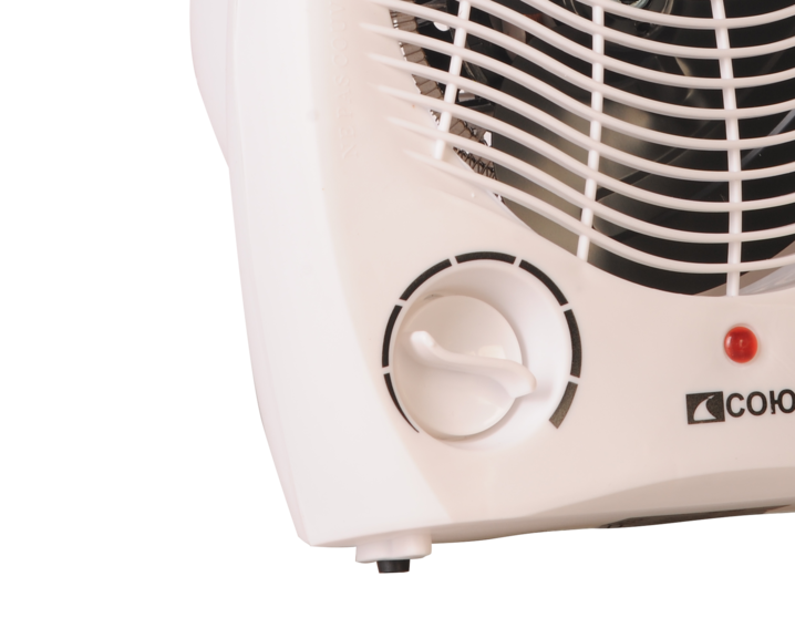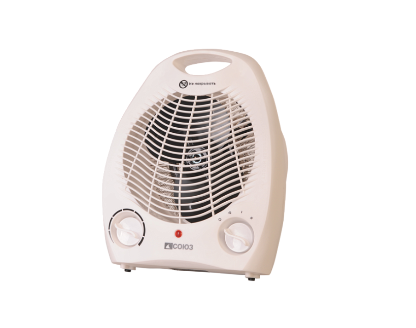 СОЮЗ ТВС-2000 – компактный эргономичный тепловентилятор – предназначен для вспомогательного обогрева и поддержания комфортной температуры в жилых помещениях небольшой площади в холодное время года, а также может использоваться в качестве вентилятора летом. Обладает небольшими массово-габаритными показателями, благодаря чему максимально удобен при перемещении с места на место и при хранении. Корпус прибора выполнен из специального жаропрочного пластика. Модель оснащена игольчатым, мгновенно набирающим рабочую температуру, нагревательным элементом и производительным вентилятором, эффективно распределяющим поток воздуха в помещении. Тепловентилятор максимально прост в использовании – управление осуществляется посредством пары поворотных регуляторов. С помощью первого пользователь выбирает нужный режим работы: вентиляция без нагрева / обдув теплым воздухом / обдув горячим воздухом. Второй регулятор заведует настройкой термостата, необходимого для автоматического поддержания заданной температуры воздуха в помещении. Для обеспечения безопасности при работе, тепловентилятор имеет защиту от перегрева. Размещенный на лицевой панели корпуса, индикатор питания позволяет визуально контролировать состояние работы прибора.