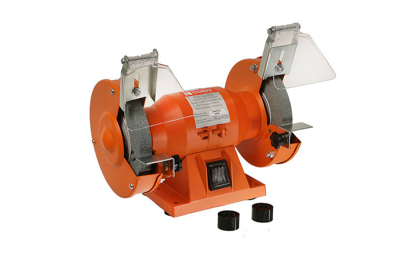 Прозрачный полимерный экран легко поворачивается на нужный угол, защищая оператора от вылета мелких частиц из-под вращающегося точильного круга, и помогая ему безопасно контролировать рабочий процесс.