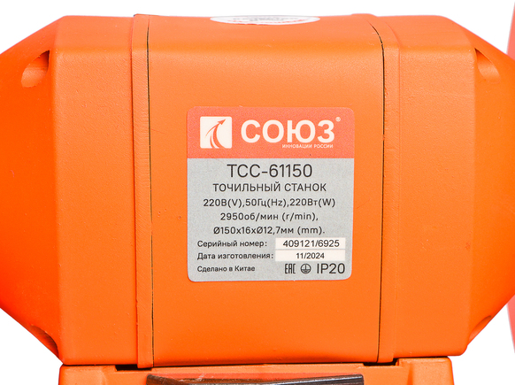 Точильный станок СОЮЗ ТСС-61150 с подсветкой