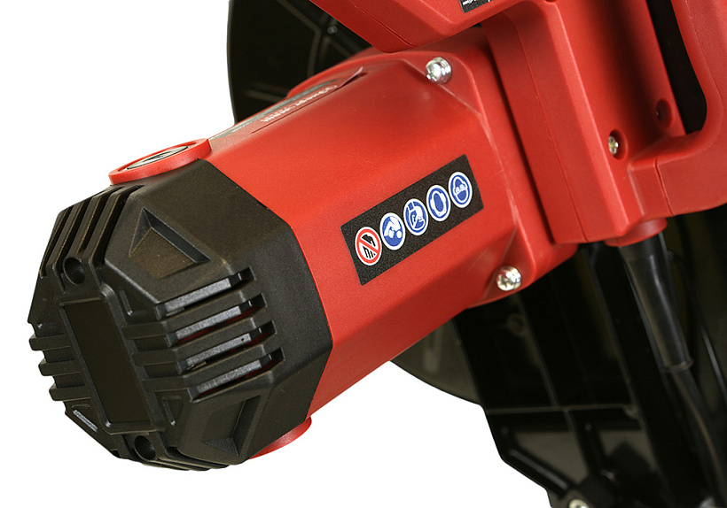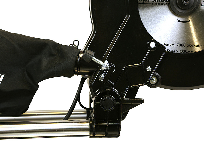 Принудительный выдув пыли из рабочей зоны реза, наличие фильтра-мешка для опилок и дополнительная возможность подключения к пылесосу улучшает условия труда.