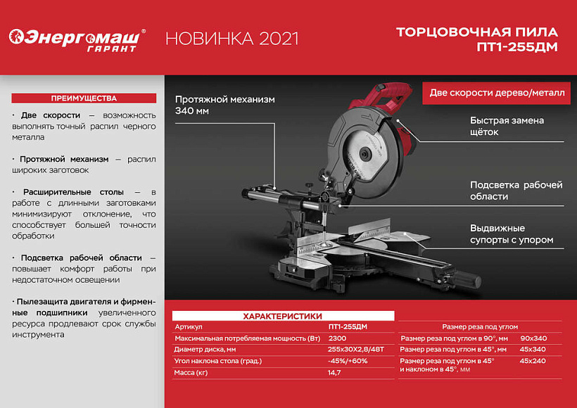 Торцовочная пила Энергомаш Гарант, ПТ1-255ДМ