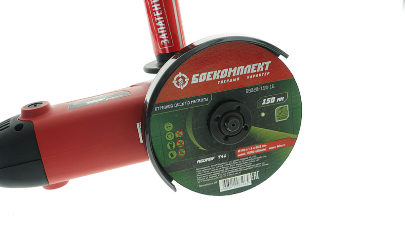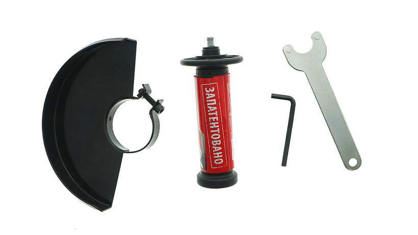 Защитный кожух, боковая рукоятка, гаечный ключ, шестигранный ключ, угольные щётки в комплекте.