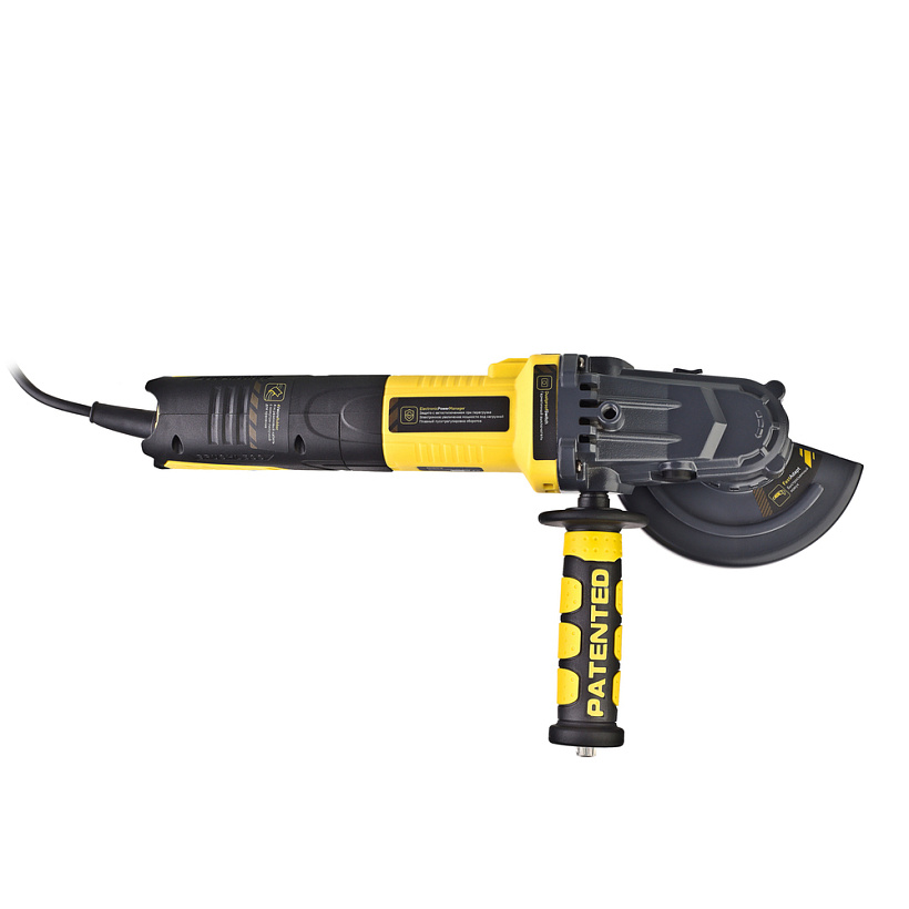 Маневренность инструмента развита с помощью плоской конструкции корпуса редуктора. Защитный кожух диска с мгновенной регулировкой положения, при помощи сопутного рычажка, дополняет легкость в обращении с ушм. Практичность модели подчеркнута твердосплавным разметочным карандашом, размещенным в боковой рукояти.