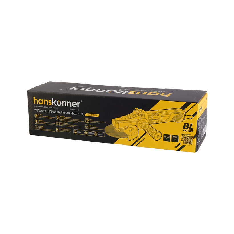 Угловая шлифовальная машина Hanskonner HAG16125E — мощный и компактный электроинструмент для шлифования и зачистки поверхностей, а также резки металлов, кирпича, керамики или камня без использования воды. Данная модель имеет бесщеточный электродвигатель мощностью 1600 Вт и фирменные японские подшипники NSK, что повышает продуктивность и рабочий ресурс. Также, ресурс инструмента, подкреплен герметичным выключателем, функцией плавного пуска и защитой от перегрузки двигателя.