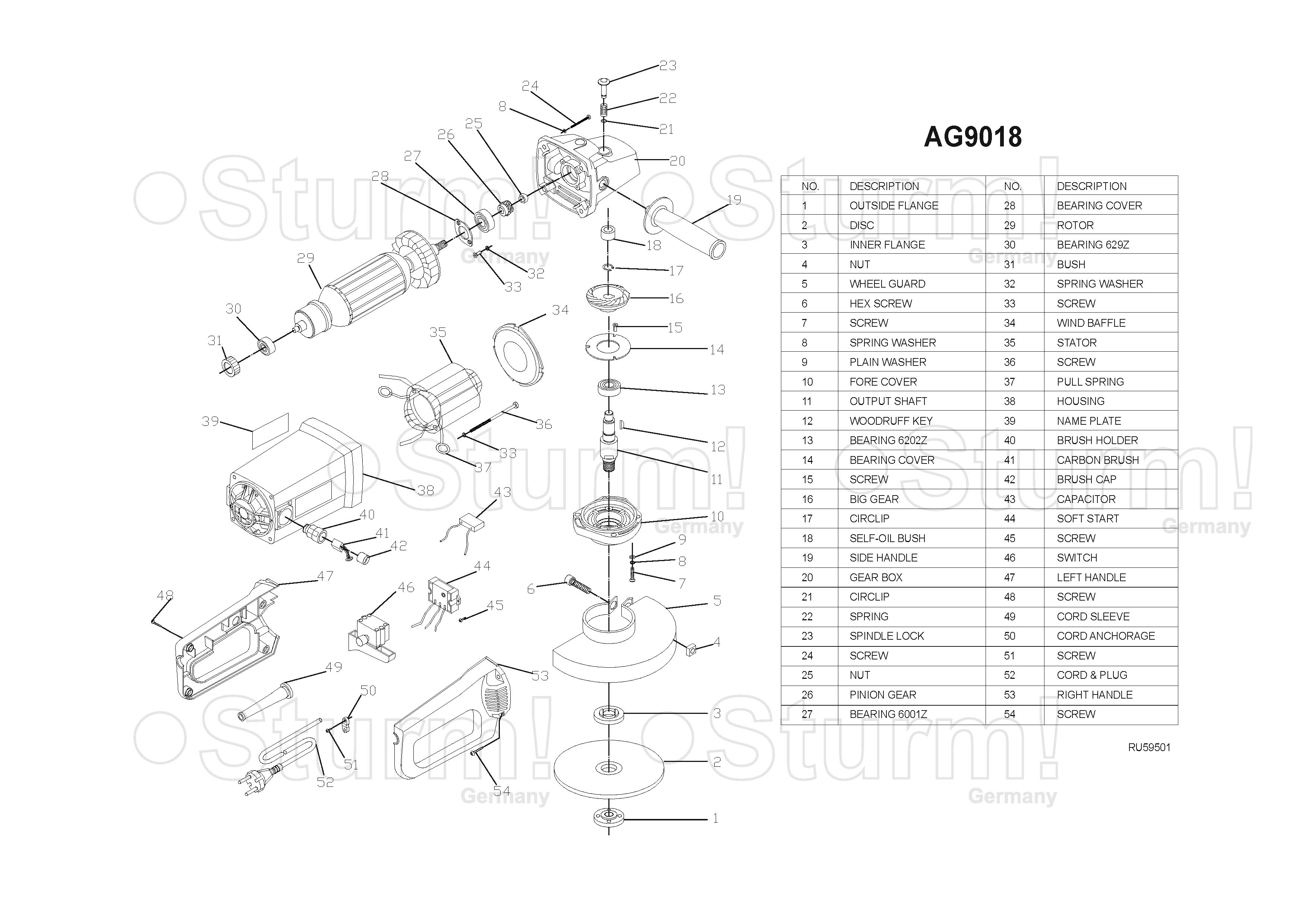 Sturm AG9018 – мощная универсальная болгарка (УШМ) бытового назначения под рабочий диаметр диска 180 мм. Модель оснащена производительным 1800 ваттным электромотором, обеспечивающим достаточный запас по мощности, даже при выполнении энергоемких операций, качественными пылезащищенными подшипниками, а также усиленным редуктором с шестернями повышенной прочности с конической формой зуба, что позволило снизить уровень шума при работе. Инструмент обладает выверенными массово-габаритными показателями и нейтральным центром тяжести, за счет чего удобен в использовании и хорошо контролируется в процессе работы. Дополнительному комфорту пользователя и надежности хвата способствует обрезиненная задняя (основная) рукоять, а также возможность установки передней (дополнительной) рукояти в трех положениях. Благодаря быстросъемному защитному кожуху, надежно фиксирующимся при помощи специального зажимного рычага можно быстро изменять положение кожуха, не прибегая к помощи вспомогательного инструмента. Для удобства продолжительной работы предусмотрена фиксация пусковой клавиши.