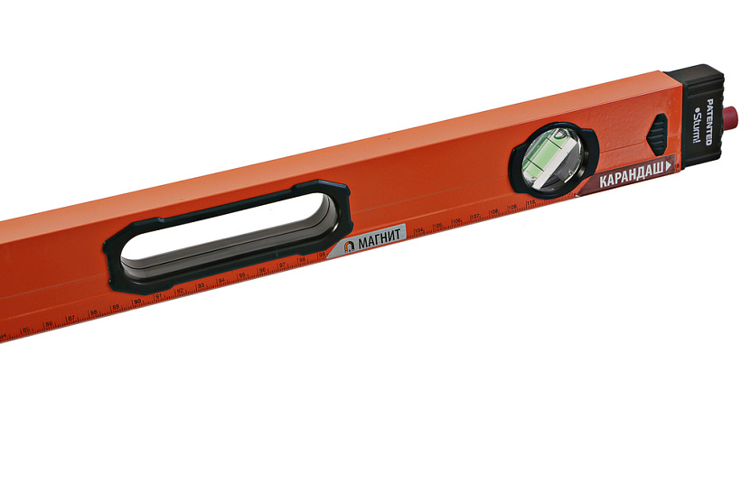 Переход от замера к разметке и обратно стал максимально быстрым, что в разы экономит время в процессе работы. Крепление осуществляется специально разработанной резиновой втулкой, которая надёжно удерживает карандаш, а также позволяет его быстро извлечь и вернуть на место, исключая возможную потерю. 3 высокоточные колбы из ударопрочного плексигласа, литой цельнометаллический профиль, стойкость к ударам, фрезерованная поверхность для лучшего сцепления с поверхностью и увеличения точности измерения, магнит, измерительная шкала, ручки для переноса.