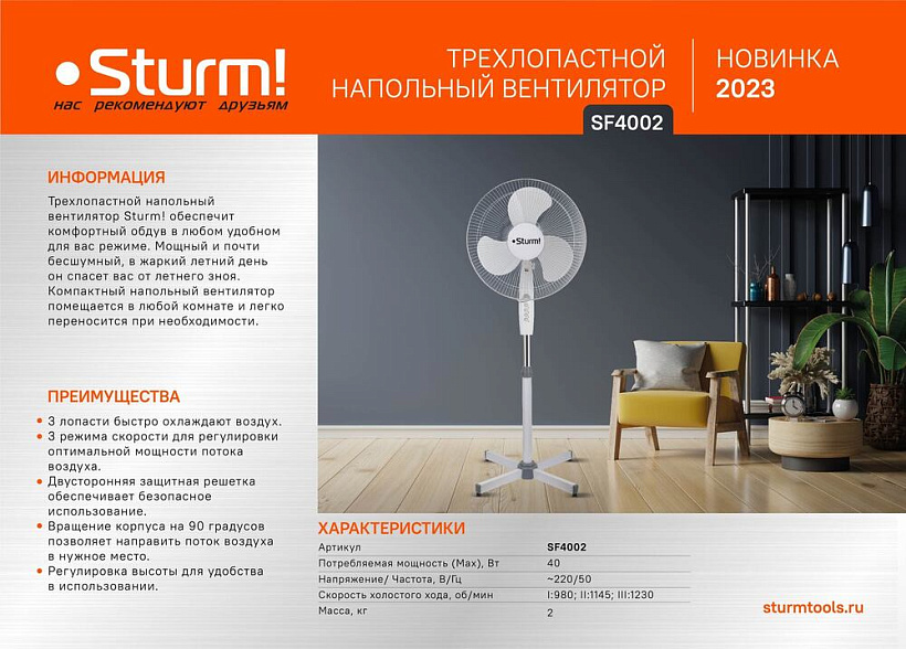 Вентилятор напольный Sturm! SF4002