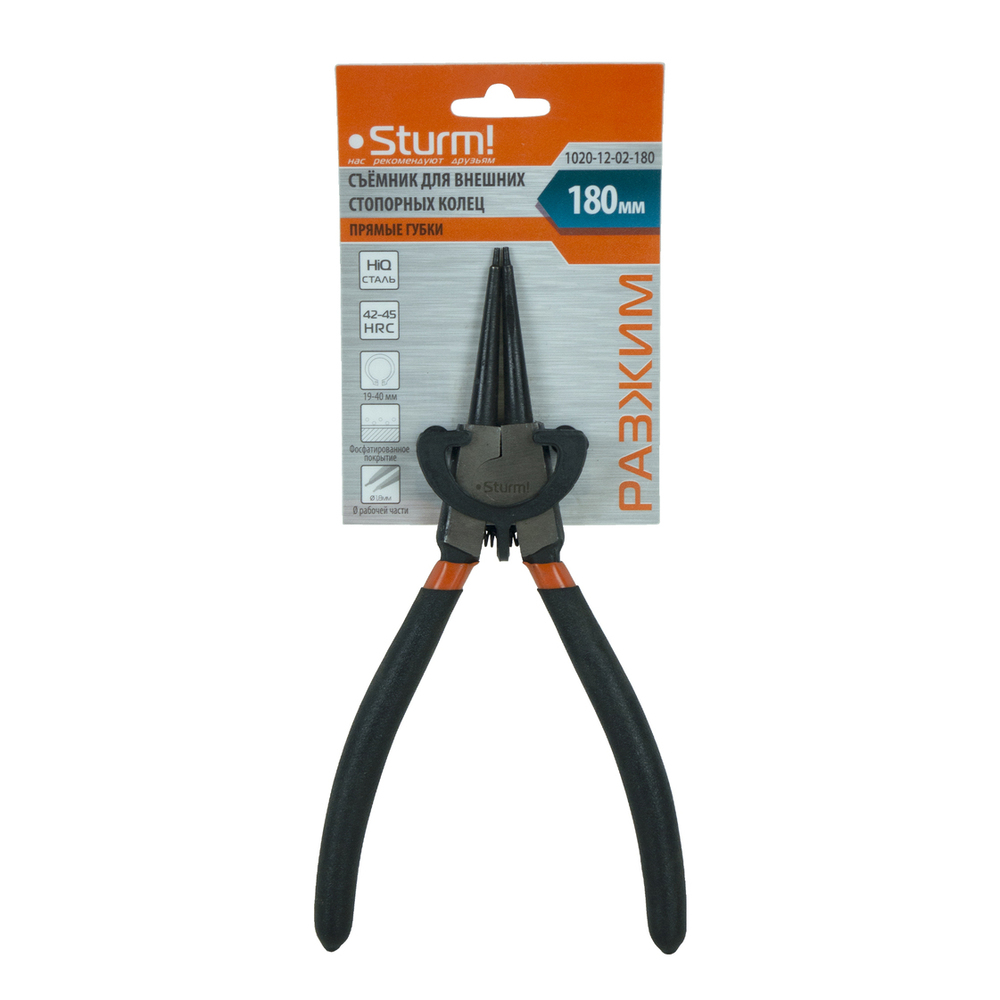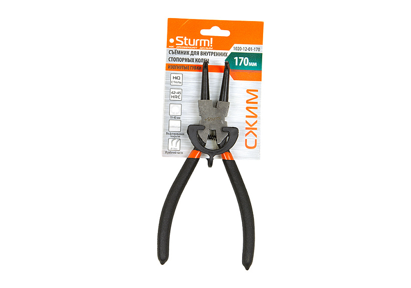 Съёмник стопорных колец, 170мм, изогнутые губки, сжим, Sturm!