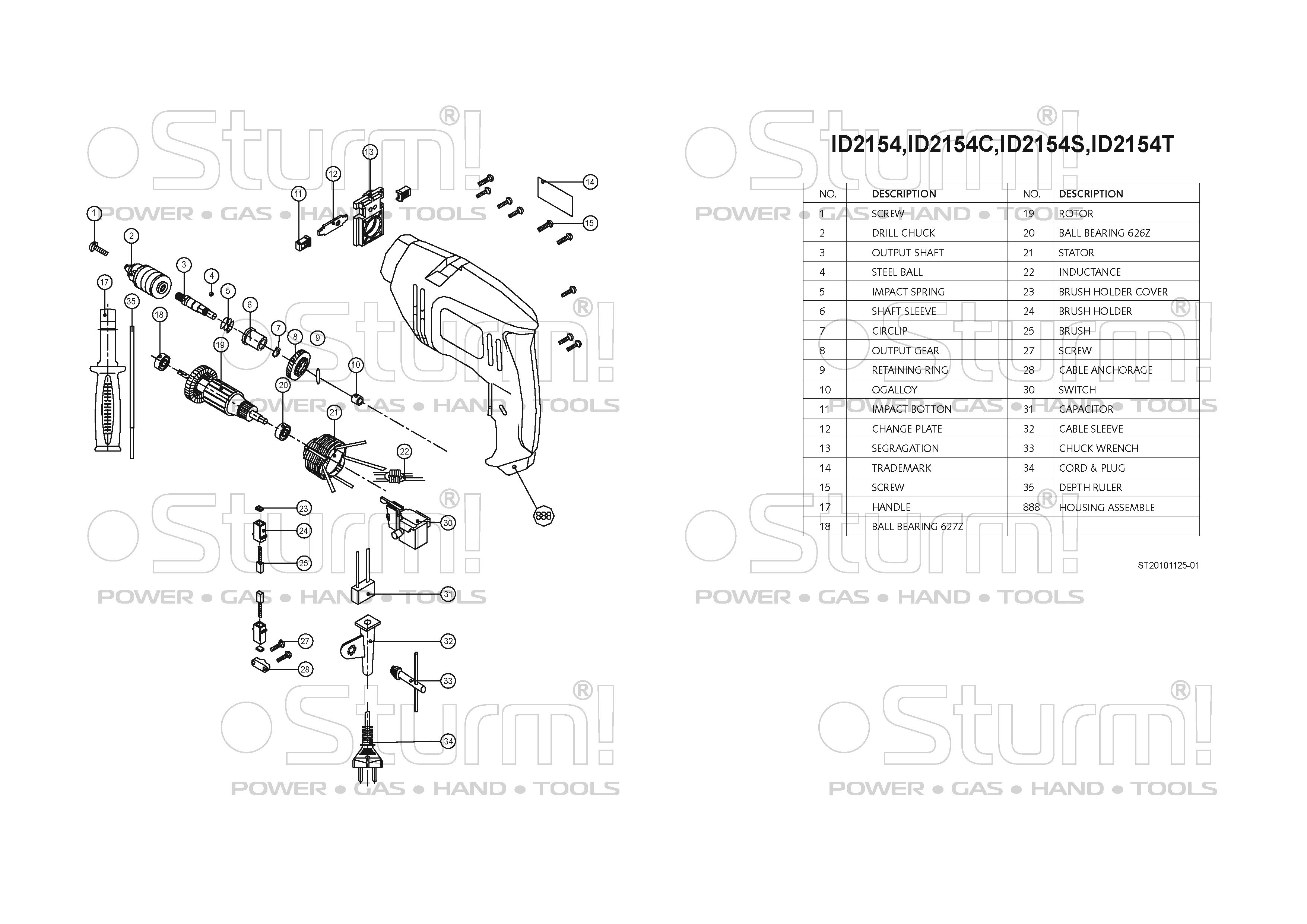 Sturm ID2154 - односкоростная универсальная дрель классической компоновки для бытового применения. Обладая небольшими габаритными размерами и массой модель идеально подходит для решения задач, где от инструмента требуется компактность: например, при необходимости засверливания отверстий в условиях ограниченного пространства, либо на высоте. За счет хорошо продуманной эргономики дрель максимально удобна в использовании: прорезиненные накладки основной рукояти и возможность установки дополнительной рукояти в любом угловом положении способствуют надежности хвата, размещенные непосредственно под пальцами флажковый переключатель реверса и регулятор количества оборотов, гарантируют простоту управления, исключая лишние движения. Предусмотрена фиксация клавиши пуска – дополнительное подспорье при непрерывном использовании. Модель оснащена производительным 650 Вт электромотором, развивающим скорость вращения на валу шпинделя до 3000 об / мин – достаточный запас по мощности способствует высокой эффективности сверления в материалах различной твердости. Важной особенностью дрели Sturm ID2154 является наличие ударного механизма, позволяющего работу с твердыми, но хрупкими материалами (керамика, керамогранит), без риска их повреждения. При необходимости, для повышения производительности, режим удара можно задействовать при сверлении отверстий в кирпичной кладке и легком бетоне. Диаметр шейки корпуса под европейский стандарт - 43 мм – обеспечивает возможность установки дрели в сверлильную стойку.