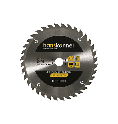 Пильный диск по дереву 185x20/16мм, 36 зубьев, Hanskonner