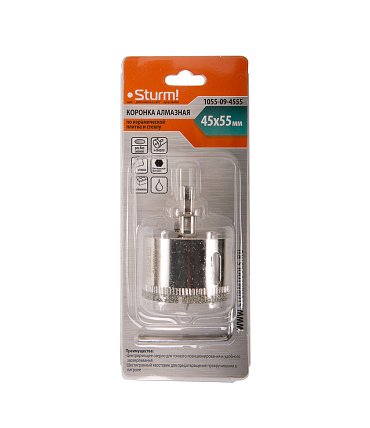 Коронка алмазн. По керам. Плитке и стеклу 45 х 55 мм, с центрир. Сверл. Sturm!
