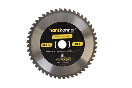 Пильный диск по СТАЛИ 255x30мм, 48 зубьев, Hanskonner