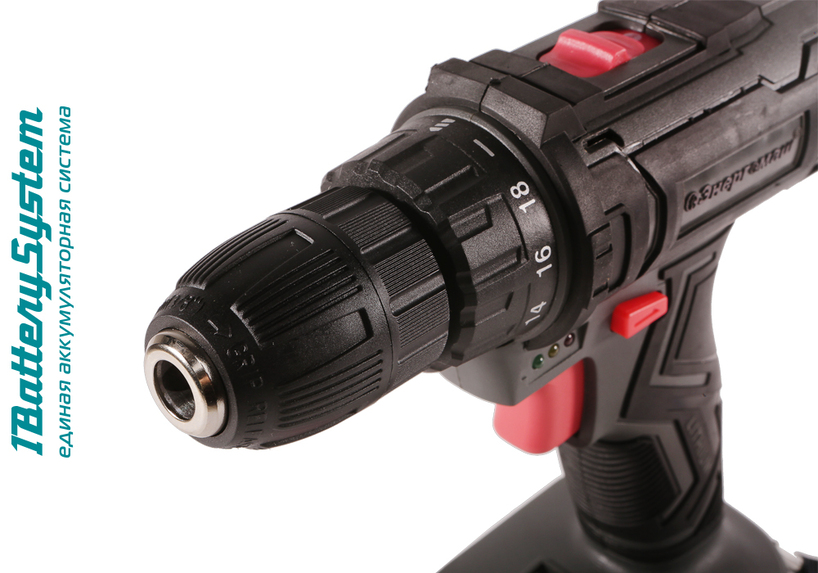 Энергомаш ДШ-18К — аккумуляторный 18-вольтовый двухскоростной шуруповерт бытового назначения. Является частью линейки 1Battery System, обеспечивающей совместимость одного и того же аккумулятора с целым рядом наименований инструмента. Модель оснащена производительным 18 В электромотором и надежным планетарным механизмом, позволяющим эффективно использовать инструмент для разных видов работ. Редуктор имеет две скорости: режим пониженных оборотов (0-450 об/мин) предназначен для операций с крепежом, режим повышенных оборотов (0-1600 об/мин) — для сверления отверстий. Благодаря муфте регулировки усилия на 18 ступеней, значение момента затяжки на валу шпинделя можно изменять в широком диапазоне — это дает возможность максимально гибко настраивать инструмент применимо к типам используемых крепежных элементов и их размеру, а также учитывая материал заготовки. Небольшая толщина корпуса и рукояти позволяет эффективно использовать модель в условиях с трудным доступом, а нейтральный центр тяжести способствует лучшему контролю инструмента. К особенностям Энергомаш ДШ-18К стоит отнести функцию блокировки вала шпинделя, электронный тормоз выбега двигателя, гарантирующий мгновенную остановку патрона, а также LED-подсветку рабочей зоны с нижним размещением, существенно облегчающую работу при недостаточном освещении. Для визуального контроля остаточного заряда аккумулятора на корпусе шуруповерта предусмотрены отдельные индикаторы. Дополнительное удобство использования обеспечивают специальная зацепная скоба, для крепления на пояс, специальный магнит для оснастки, встроенный в корпус держатель для биты, а также страховочный ремешок для руки. Шуруповерт комплектуется парой литий-ионных (Li-ion) аккумуляторов, емкостью 2 Ач, импульсным зарядным устройством, прочным пластиковым кейсом для удобства хранения и транспортировки.