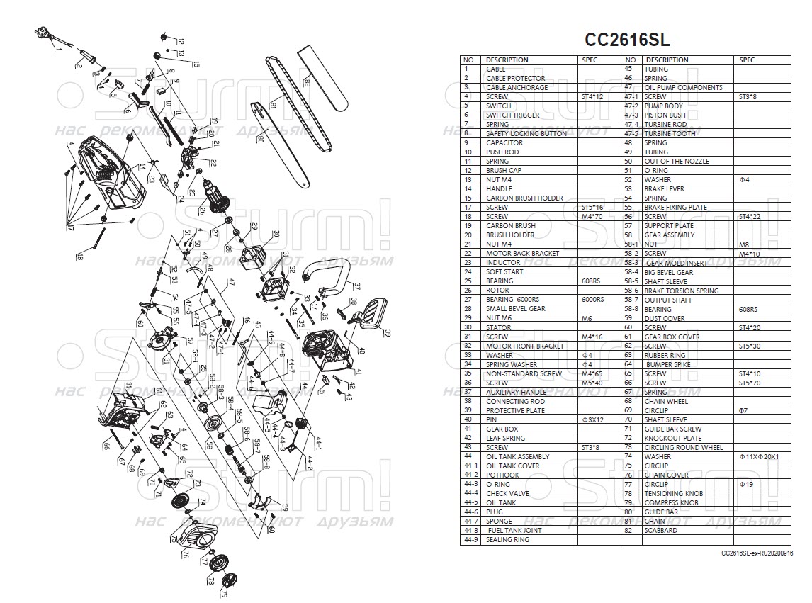 Sturm CC2616SL – производительная электрическая цепная пила бытового класса. Инструмент имеет продольную компоновку двигателя и благодаря этому, отлично приспособлен к использованию в условиях с затрудненным доступом. Модель оснащена электромотором мощностью 2.6 кВт и развивает скорость движения цепи в 720 м / мин – это способствует как высокой скорости единичного пропила, так и общей производительности при значительных объемах работы. Для обеспечения высокого ресурса, особое внимание уделено наиболее нагруженным элементам конструкции: электромотор покрыт несколькими изоляционными слоями термостойкого лака, вал приводной звездочки установлен на шарикоподшипниках, шестерни редуктора выполнены из высоколегированной стали. Кроме того, применение шестерен с конической формой зуба позволило снизить уровень шума при работе. Для комфорта пользователя, модель Sturm CC2616SL получила бесключевую систему натяжения цепи, позволяющую производить регулировку натяжения цепи без применения вспомогательного инструмента. Безопасность использования гарантируют тормоз экстренной блокировки цепи Smart Brake, мгновенно останавливающий цепь при срабатывании тормозного щитка или при отпускании клавиши пуска, а также защита от непреднамеренного запуска. Удобству обслуживания способствует функция быстрого доступа к щеткам, позволяющая производить их замену без демонтажа элементов корпуса.
