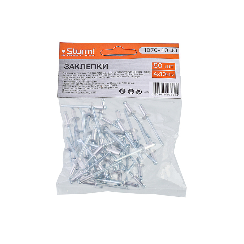 Заклепки 4,0 х 10 мм, 50 шт. Sturm!