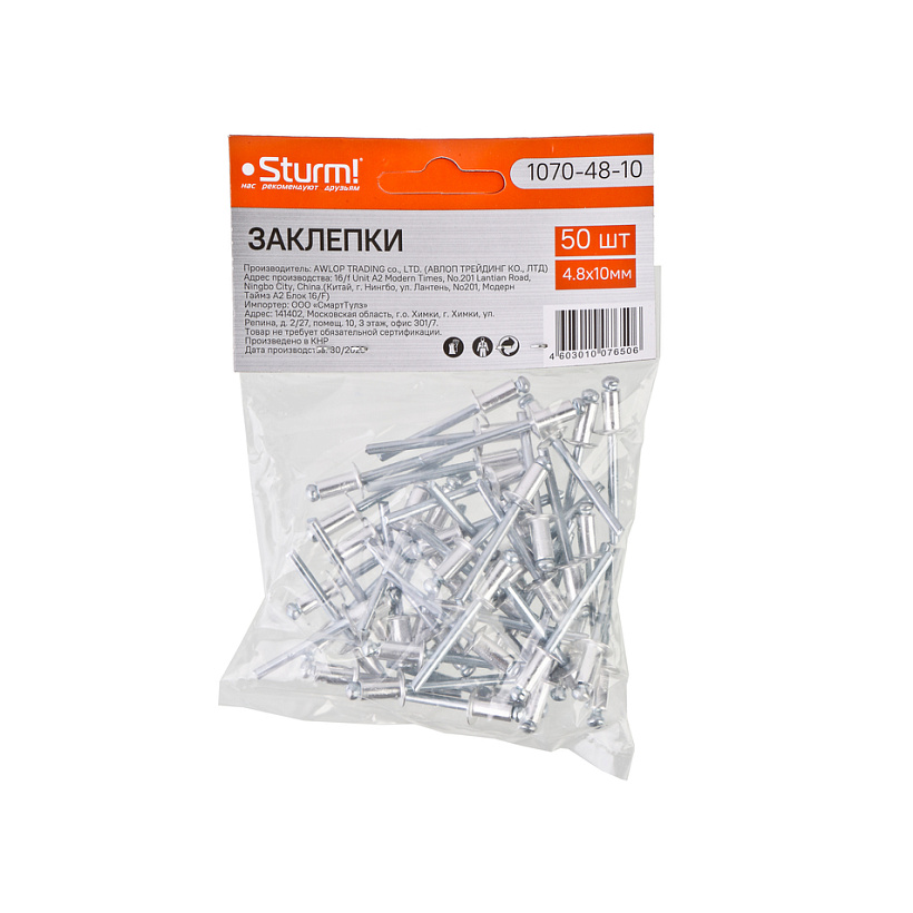 Заклепки 4,8 х 10 мм, 50 шт. Sturm!