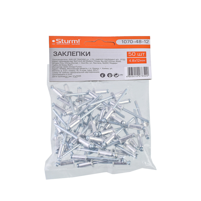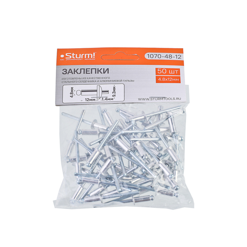 Заклепки 4,8 х 12 мм, 50 шт. Sturm!