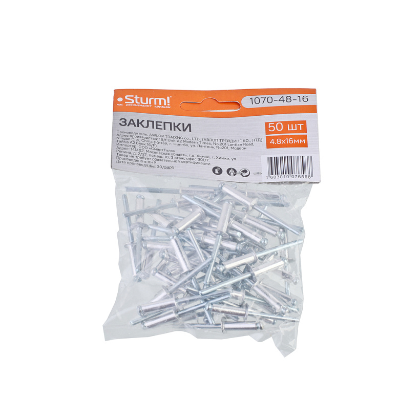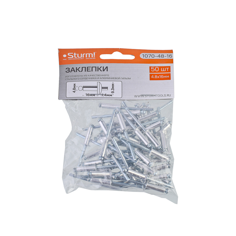 Заклепки 4,8 х 16 мм, 50 шт. Sturm!