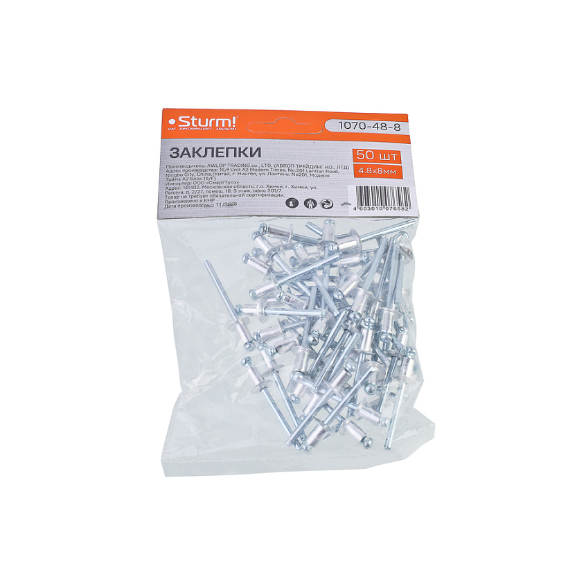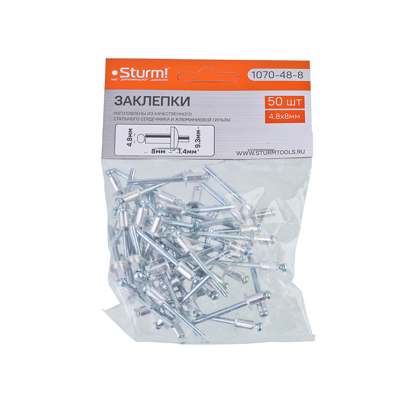 Заклепки 4,8 х 8 мм, 50 шт. Sturm!