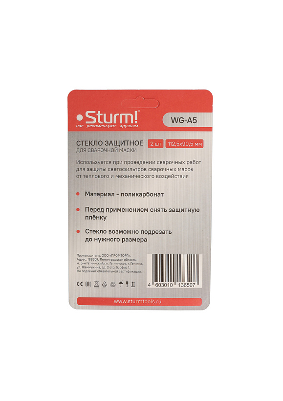 Внешнее защитное стекло маски сварщика Sturm! WG-A5