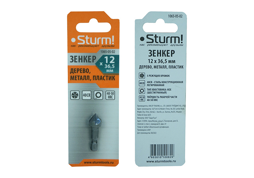 Зенкер, 12x36,5мм, шестигранный хвостовик, Sturm!